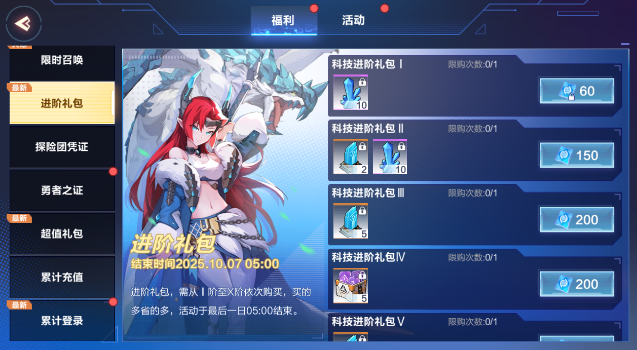 超值进阶礼包来了!购买1阶礼包后解锁2阶购买权限,可依次购买至10阶,越买越超值!
