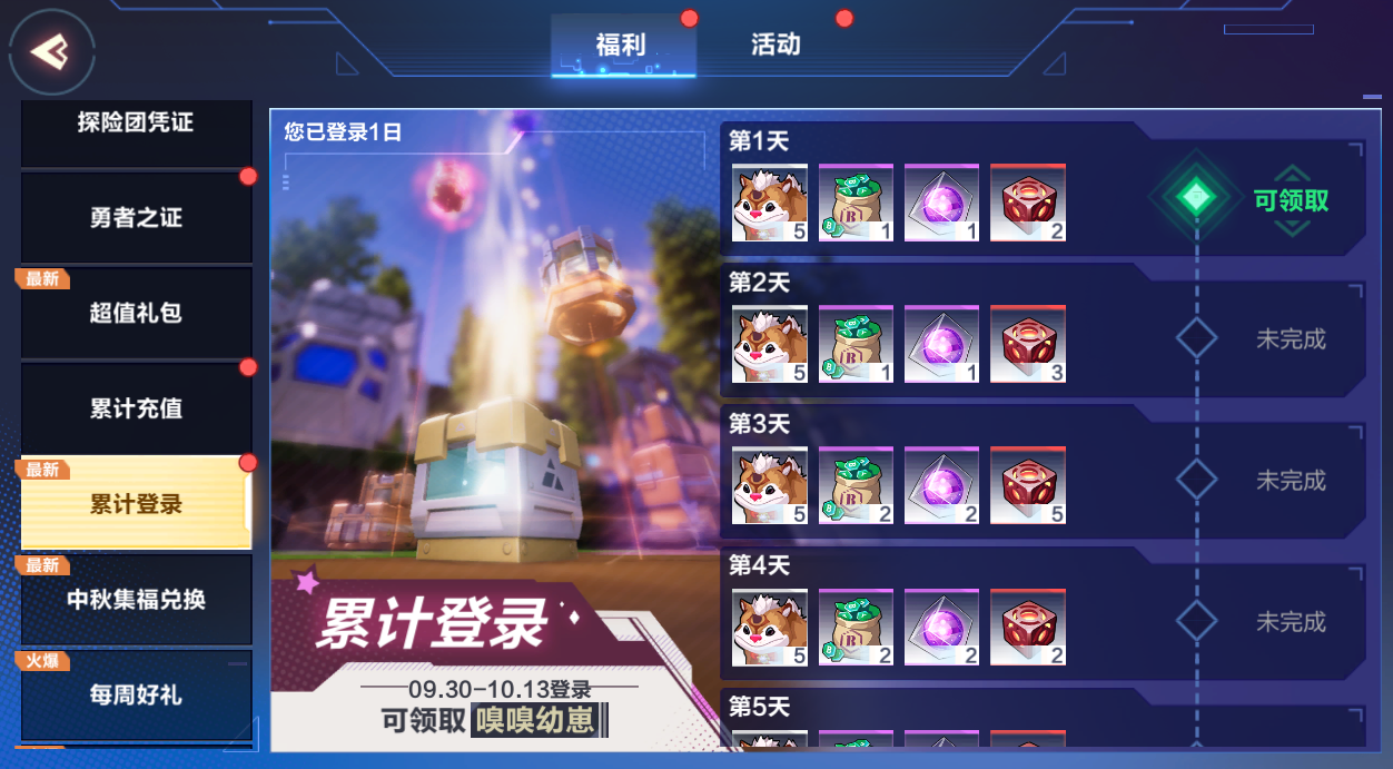 活动期间累计登录达到指定天数后可领取丰厚奖励,登录十四天合计可获得70个嗅嗅幼崽!