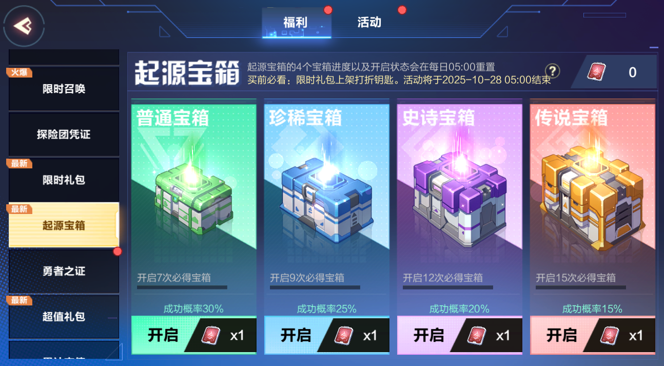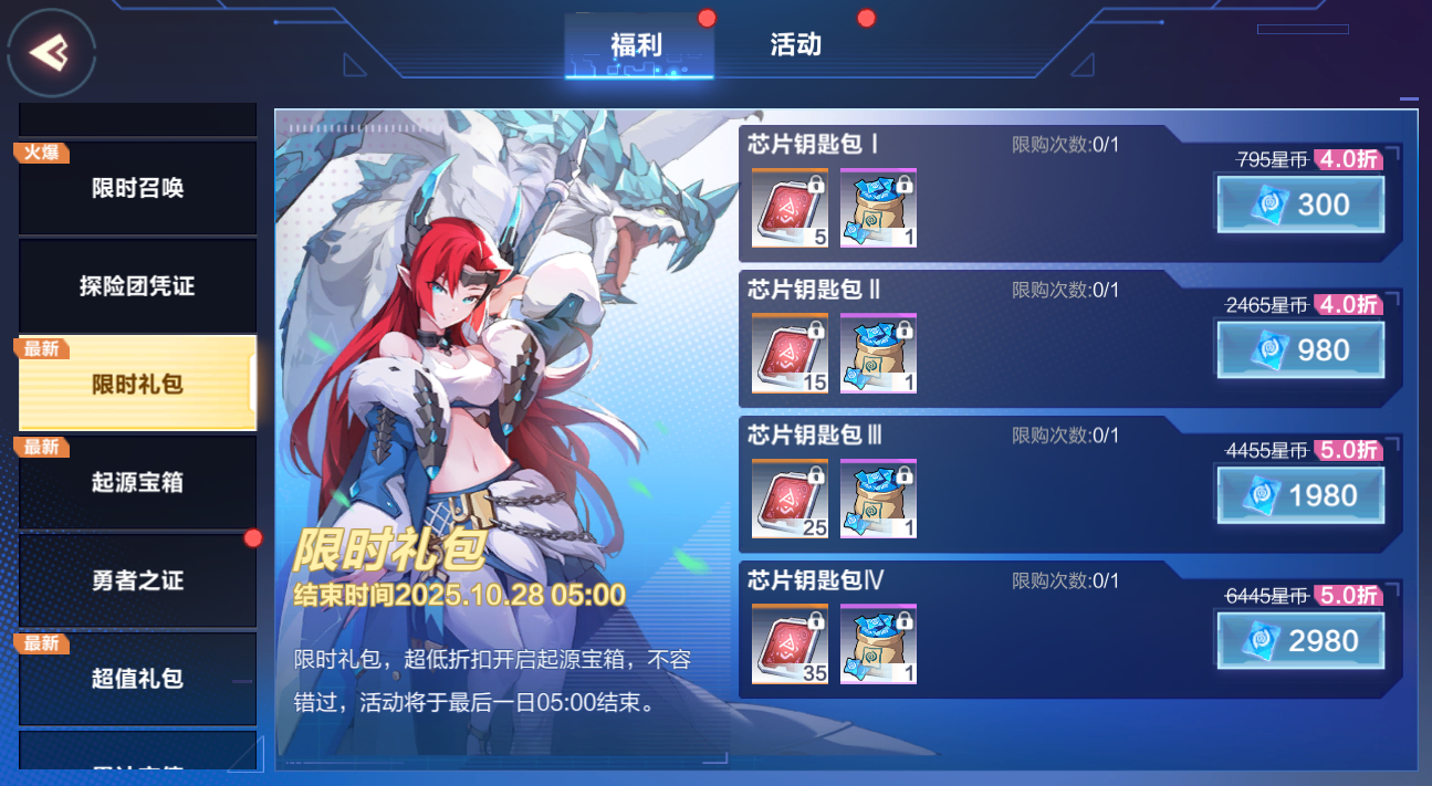 起源宝箱活动期间,可享受超值优惠购买芯片钥匙包,内含大量芯片钥匙和星券,超低折扣开启起源宝箱,不容错过!