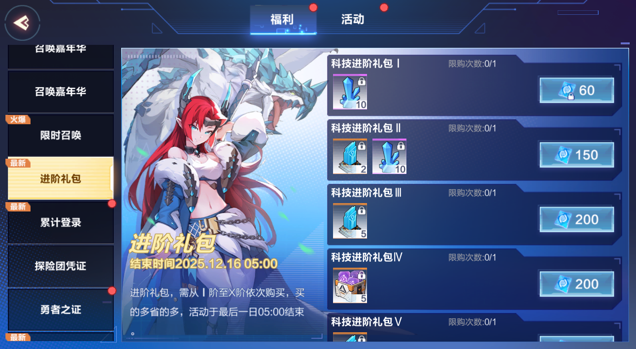 超值进阶礼包来了!购买1阶礼包后解锁2阶购买权限,可依次购买至10阶,越买越超值!