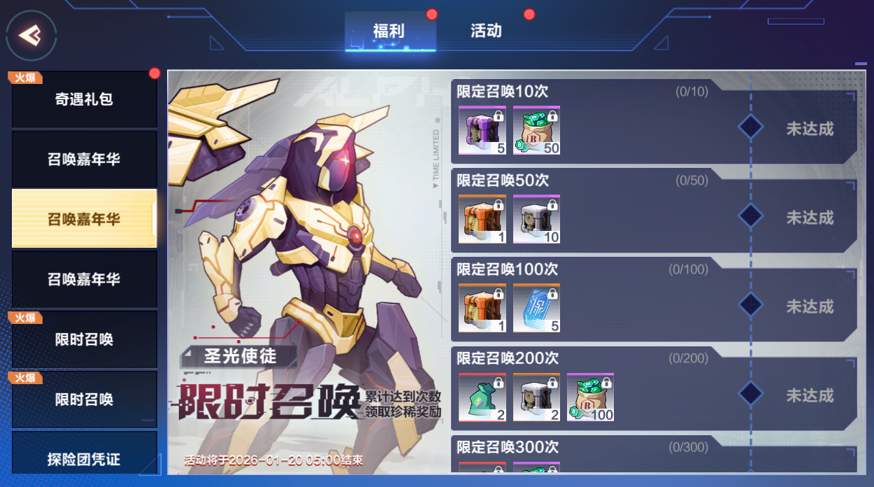 2.机甲召唤嘉年华开启,圣光使徒限时返场