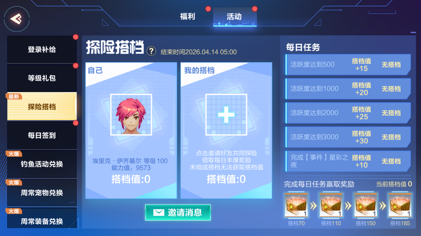 完成活动累计活跃度,可以获得不同的奖励!此外成为搭档还可以建立亲密羁绊,加深彼此之间的信任和理解,让游戏更加有趣和有意义。不要犹豫,快和你的好友一起成为搭档,开始每日探险之旅吧!