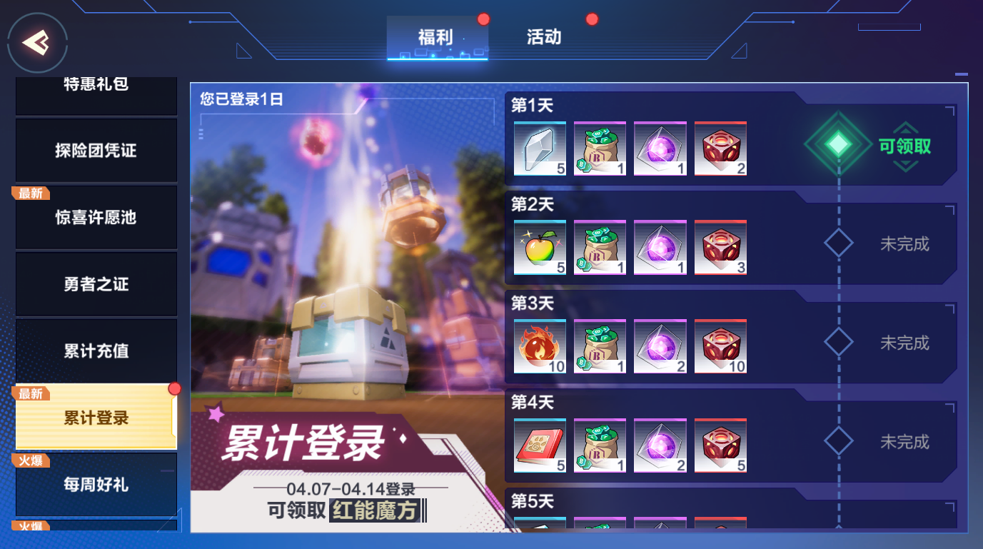 活动期间累计登录达到指定天数后可领取丰厚奖励,闪耀晶石、彩虹苹果、驯兽指南等,登录七天合计可获得1个变异的冰石蟹!